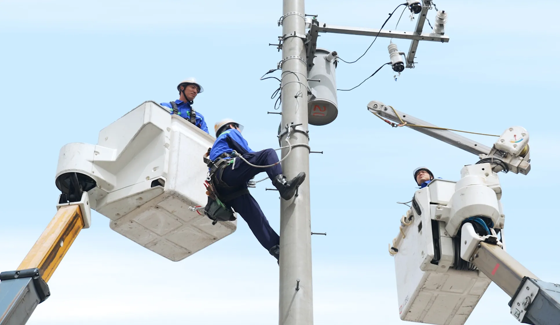 電力会社の電柱から建物へ電気を安全に引き込むための引込線の工事を行います。