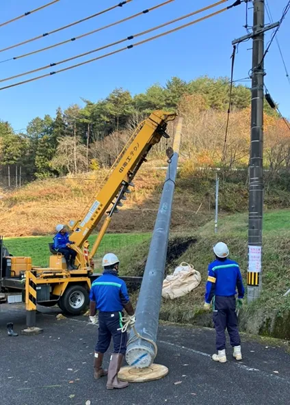 さまざまな場面で行われる建柱工事は、地域の暮らしを支える電力供給の基盤づくりに欠かせない作業です。